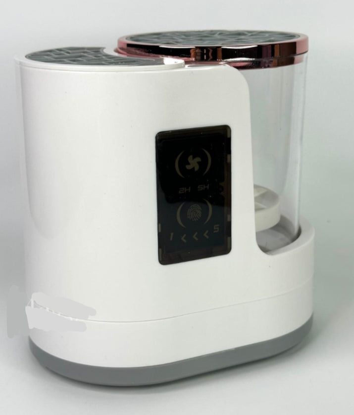 Answer 3: The makeup brush cleaner features smart airflow technology for rapid drying. You can choose between two drying options—2 hours or 5 hours—depending on your needs. This ensures that your brushes are dry and ready to use quickly after cleaning, enhancing your overall makeup routine.